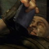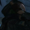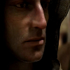 Description: A thin-faced man in a hood looking to the left, seeming sullen
